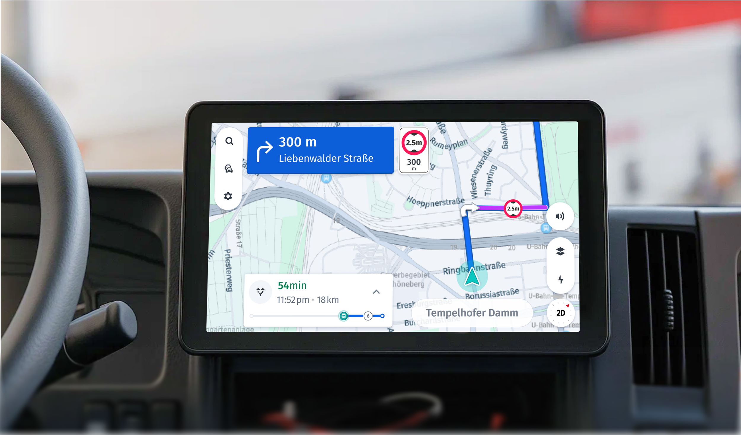 On HERE navigation, although base map content is created by a dedicated cartography team, I contribute on designing what lives above it: markers, annotations, and interaction logic across passenger vehicles, EV flows, and commercial applications such as trucks.