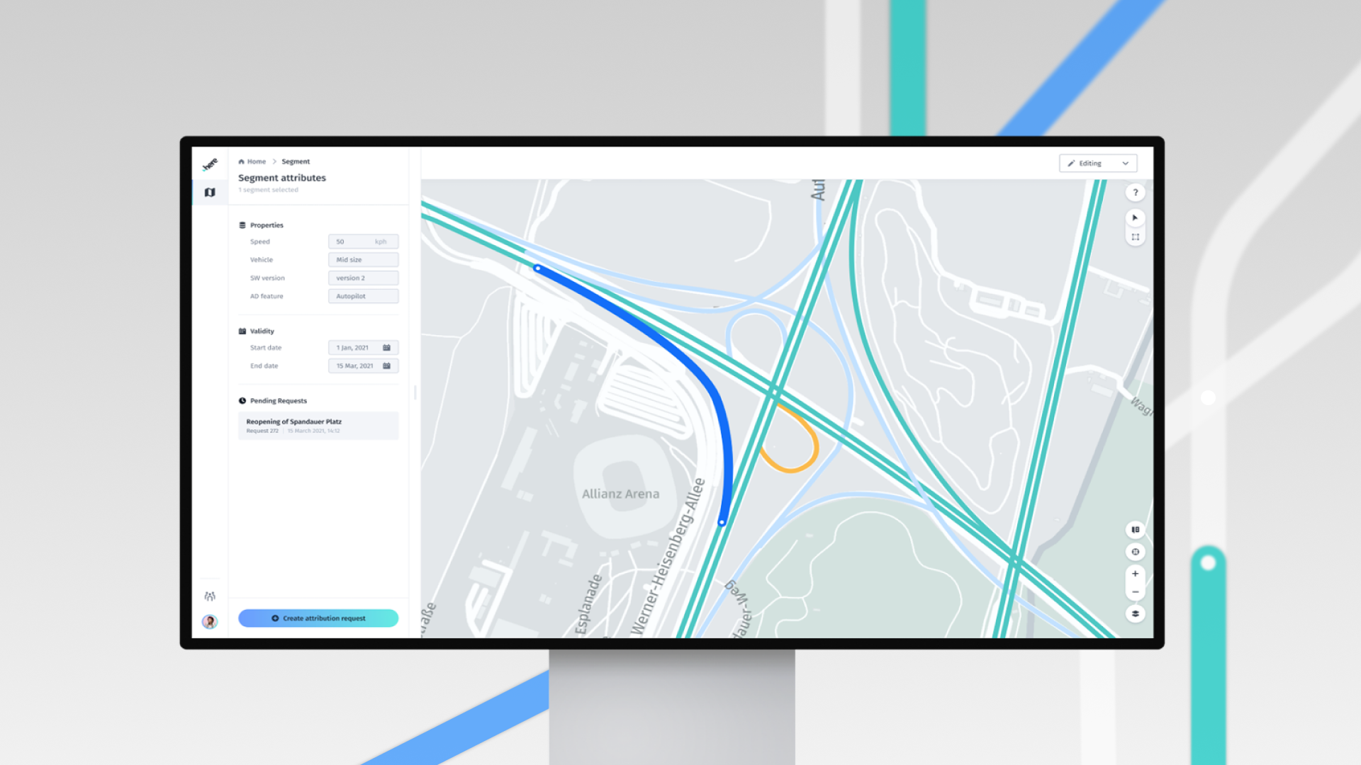 With Automated Driving Zones, I worked on a map annotation and editing tool that enables users to define spatial attributes and rules for autonomous vehicle behavior. This required careful thinking around spatial abstraction, editing workflows, and clear visual states within complex systems.